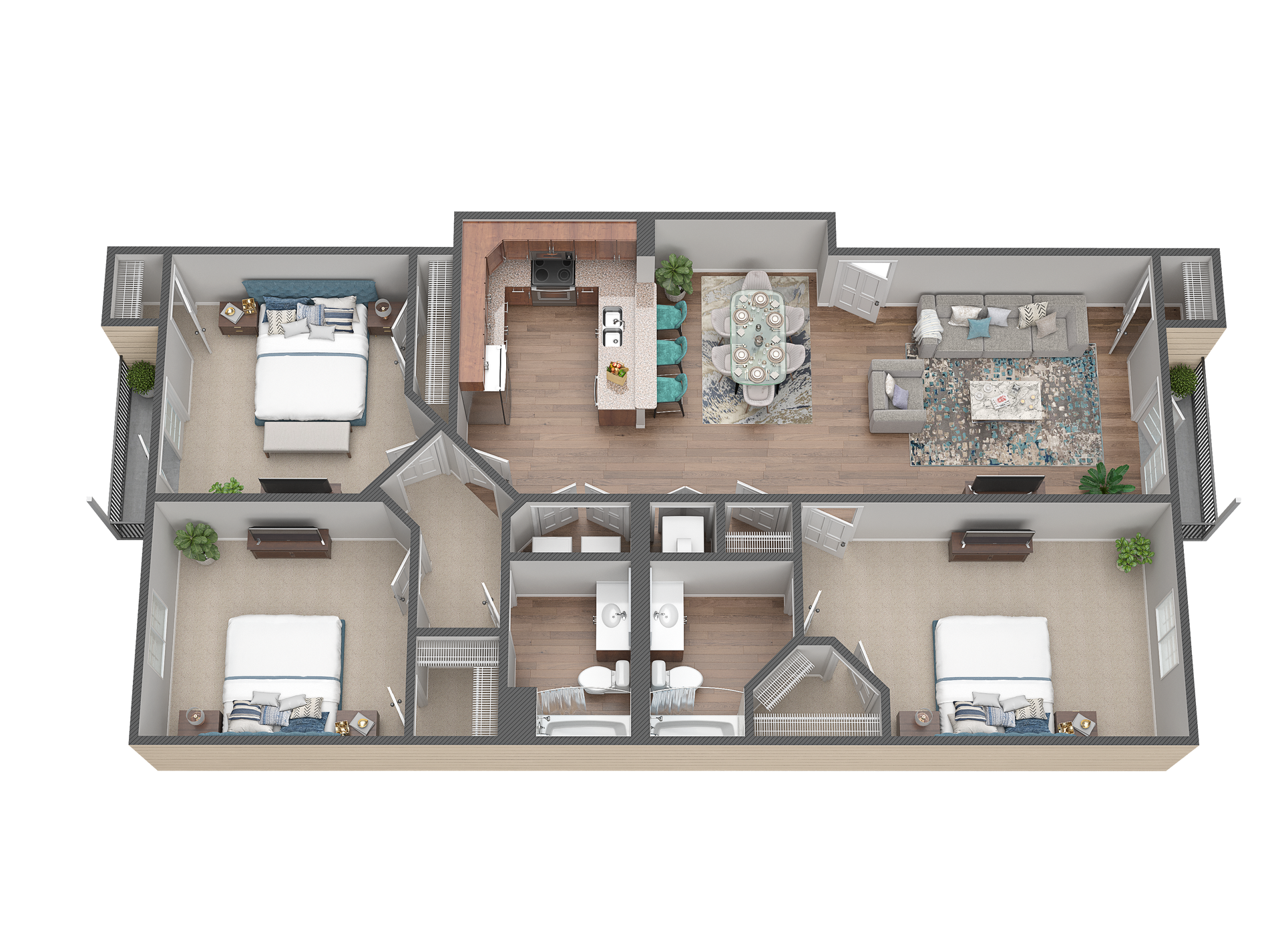 There’s plenty to do around town, but you might prefer a day at home more. Our upscale interiors exude sophistication with features such as wood-style flooring, crown molding, and a private patio or Juliette balcony. On the other side of your front door, you’ll find a connected community with plenty of space to lounge, gather, work, sweat, and play.